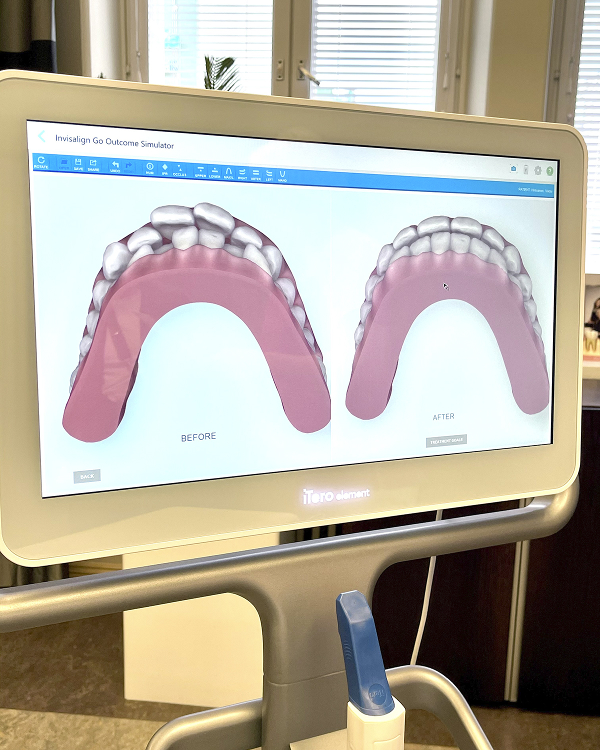 Keväällä minulle tarjoutui mahdollisuus Invisalign-oikomishoitoon! Olen tästä äärettömän iloinen ja onnellinen. Invisalign-hoito toteutetaan läpinäkyvillä kalvoilla, jotka vaiheittain siirtävät hampaitani kohti haluttua lopputulosta. Jo ensimmäisellä konsultaatiokäynnillä Hammasklinikka Kruunussa sain nähdä upean 3D-kuvantamistekniikan avulla miltä hampaani näyttäisivät oikomishoidon jälkeen.