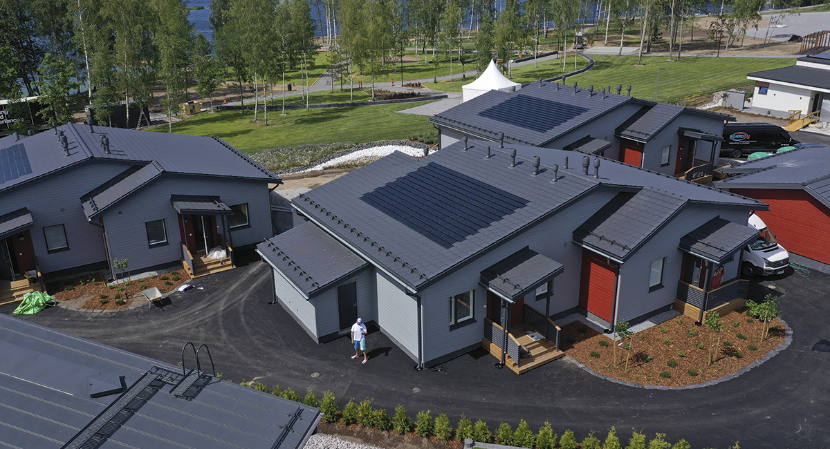 Käy Lohjan asuntomessuilla tutustumassa Ormax Aurinko Hiidenkotiin. Se on kolmen paritalon ja yhteistilojen muodostama kokonaisuus, jonka asuinrakennusten katoilla on tiilikattoon integroidut aurinkopaneelit.