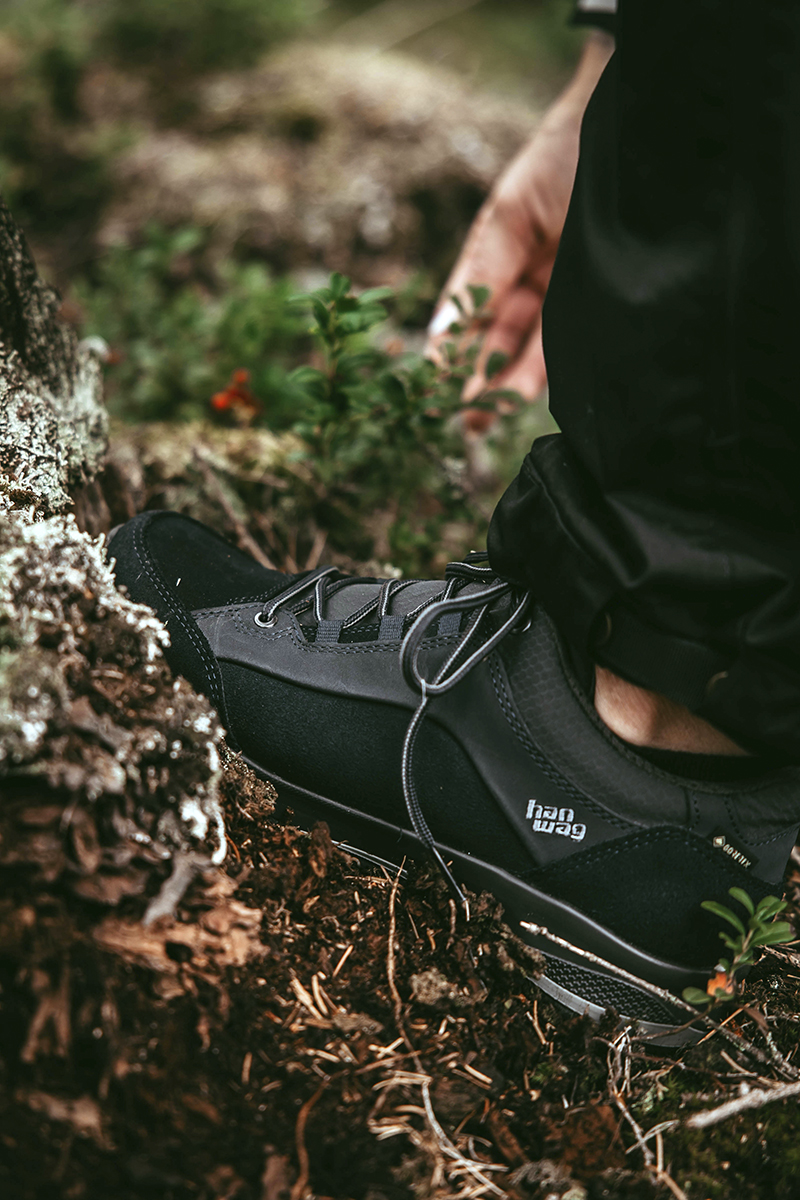 Pitävät kengät ja kosteutta hylkivät vaatteet Kengät ovat Varpulle varusteista tärkeimmät. Niiden täytyy olla liukumattomat ja sopia metsäkävelyille. Käytössä on nyt Partioaitan valikoimasta löytyvät laadukkaat, kävelyille tai retkeilyyn sopivat, Hanwag Banks Low -kengät. Ulkoiluhousuiksi Varpu valikoi Fjällrävenin klassiset Keb-housut, jotka saavat kiitosta erityisesti reilusta taskujen määrästä.