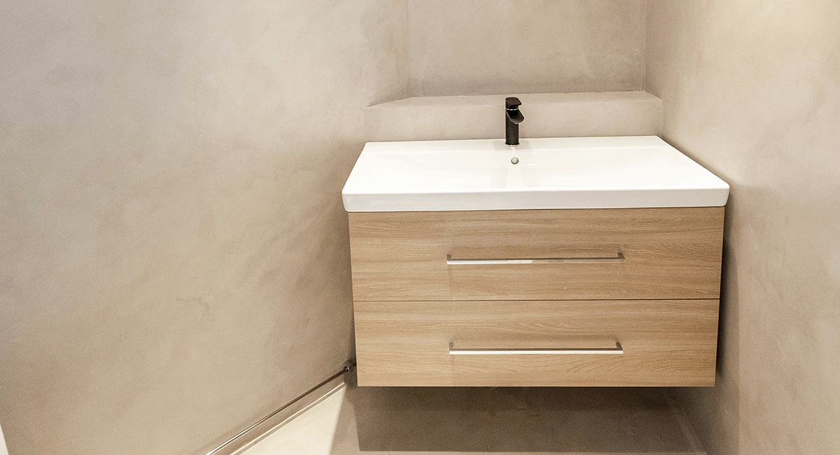 – Emme halunneet jyrätä vanhaa saman tien, vaan päivittää meidän aikaamme sopivaksi. Valitsemamme Villeroy & Boch Gustavsbergin kalusteet huokuvat laatua ja ovat pitkän tähtäimen valinta, Juha kertoo.